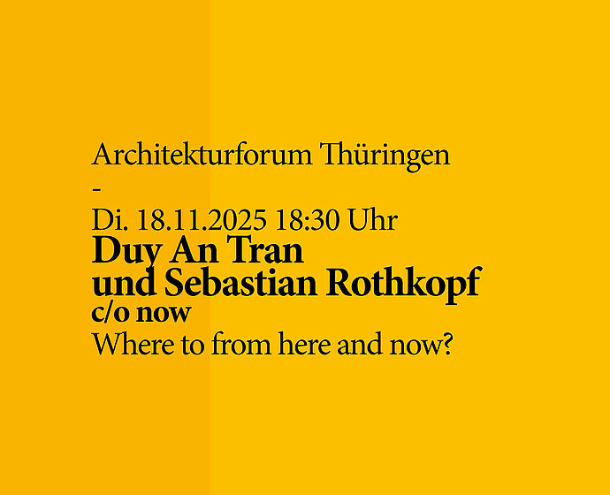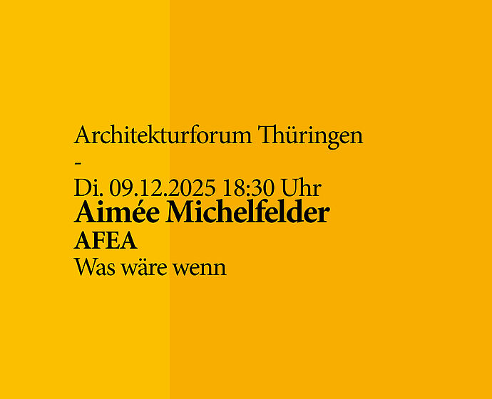 Das Programm für das Architekturforum Thüringen im Wintersemester steht endlich. Eingeladen sind die Architektin Duy An Tran und Architekt Sebastian Rothkopf von der an einer kollektiven Praxis orientierten Gruppe "c/o now", die Architektin Aimée Michelfelder der Association For Ecological Architecture AFEA und Karin Hartmann, Architektin und Autorin des Branchenbestsellers "Schwarzer Rolli, Hornbrille". Wieder…: ‚they are kind of pushing the boundaries of the discipline', jeweils auf ihre Art und Weise, die Vortragenden lassen sich kaum unter einem anderen Motto zusammenfassen. Das wird ein super Winter!
