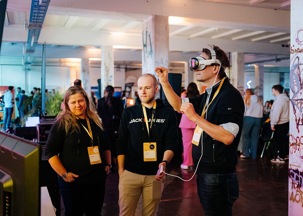Der Ministerpräsident Mario Voigt eröffnete den Abend mit einer digitalen Grußbotschaft und betonte die zentrale Rolle der Hochschulen als Motor für Innovation und Wirtschaftskraft in Thüringen. Staatssekretär Prof. Steffen Teichert vom Thüringer Ministerium für Bildung, Wissenschaft und Kultur war persönlich anwesend und überreichte die Auszeichnung des Pitch-Wettbewerbs. Den ersten Platz errang Zeinab Rahimi von der Gründungswerkstatt neudeli der Bauhaus-Universität Weimar mit ihrem Projekt iACT – einer Virtual-Reality-Lösung zum Erlernen von Fremdsprachen.