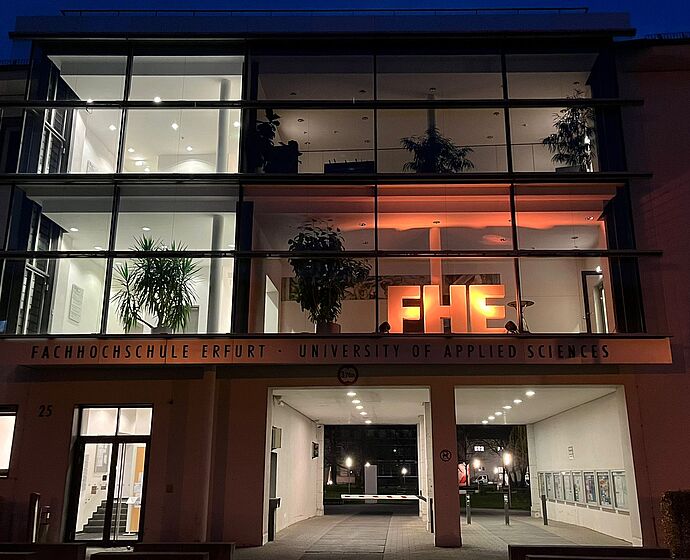 Am 25.11.2024 war „Internationaler Tag zur Beendigung von Gewalt gegen Frauen“. Die FH Erfurt beteiligt sich an der UN-Kampagne „Orange the World“ und setzt mit einem orange beleuchteten Gebäude am Campus Altonaer Straße ein Zeichen gegen Gewalt und Sexismus.