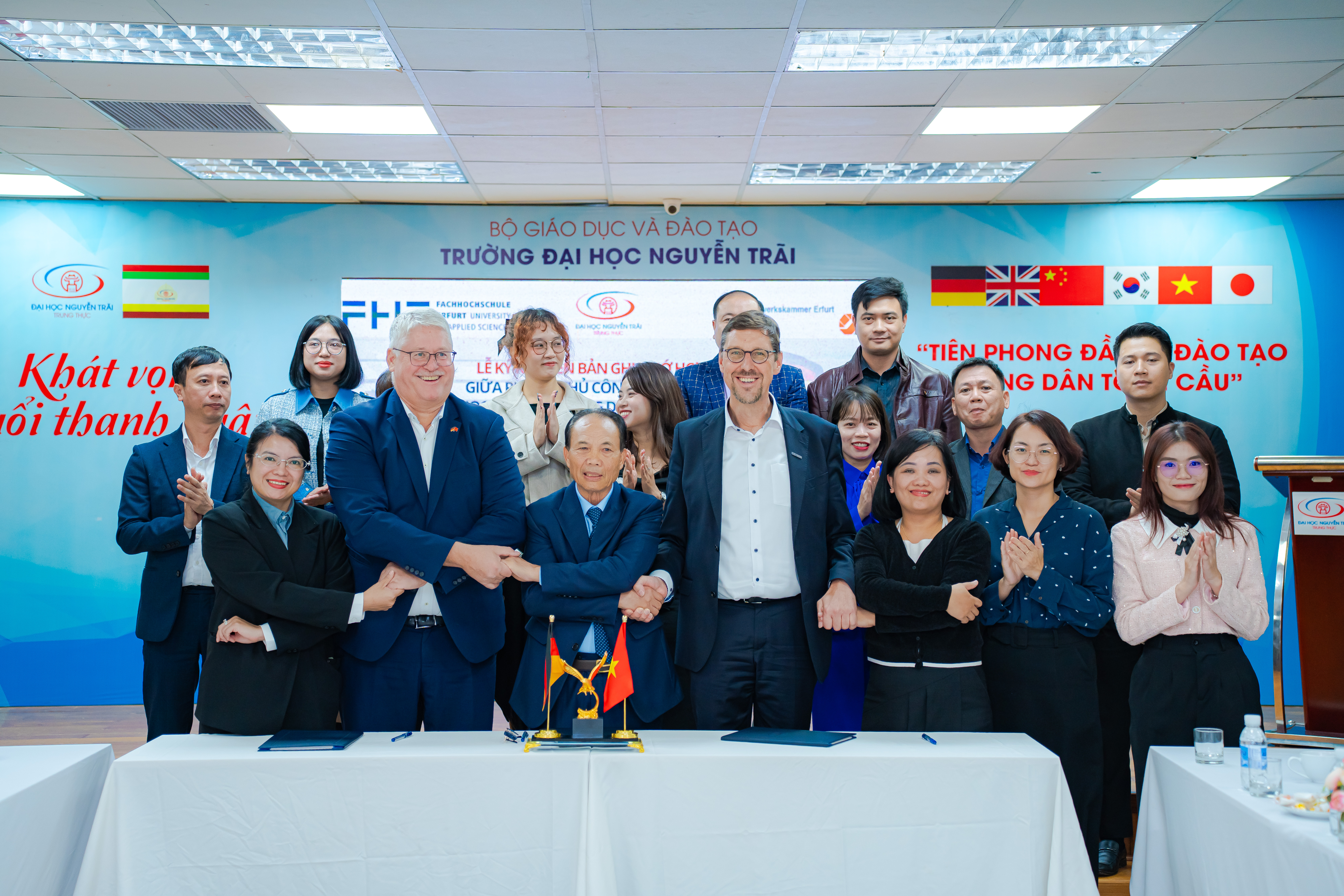 Zur Pflege und zum Ausbau akademischer Kooperationen traf sich die Delegation mit der Partnerhochschule University of Transportation and Communication (UTC) und führte konkrete Gespräche zur Intensivierung der Studierendenmobilität in beide Richtungen. Ebenso erfolgte ein Besuch an der Hanoi University of Science & Technology (HUST) im Rahmen einer Delegationsreise thüringischer Wirtschaftsvertreter, wo erste Schritte für eine mögliche Kooperation besprochen wurden. Gleiches gilt für die Nguyen Trai University, bei der die FHE gemeinsam mit einem Vertreter der Handwerkskammer Erfurt eine Infoveranstaltung für interessierte Studierende abhielt.