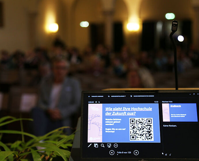 Die Veranstaltung stand unter dem Motto „Brücken bauen. Spannungsfelder digitaler Lehrinnovationen“. In der Eröffnungs-Keynote betonte Prof. Dr. Benno Stein die Bedeutung eines verantwortungsvollen Umgangs mit Künstlicher Intelligenz (KI) für eine nachhaltige und kreative Hochschullehre. Dr. Laura Sūna beleuchtete in der zweiten Keynote die Anforderungen an digitale Kompetenzen von Studierenden und die Chancen, die das digitale Zeitalter für das Lernen und Lehren bietet.