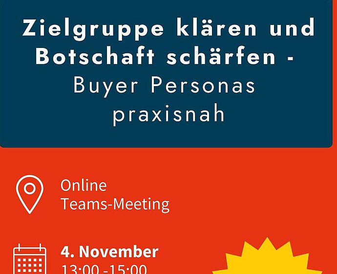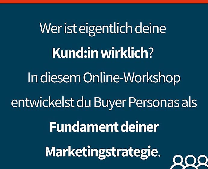 In diesem Online-Workshop entwickeln Sie Buyer Personas als Fundament Ihrer Marketingstrategie. Sie erfahren, warum die Arbeit mit Zielgruppen nicht einfach ein „Nice-to-have“ ist, sondern der erste und wichtigste Schritt im Gründungsprozess.